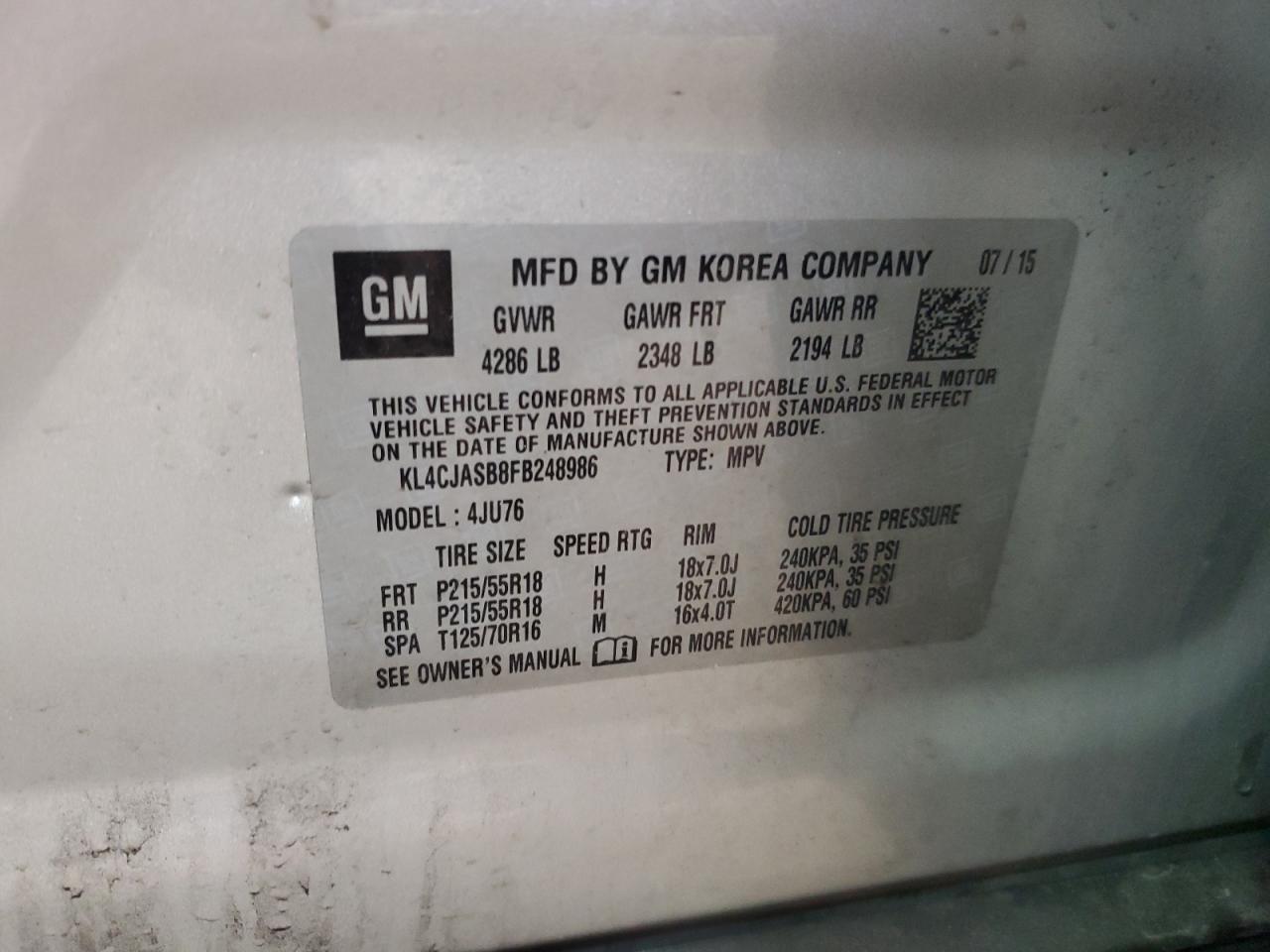 2015 BUICK ENCORE - KL4CJASB8FB248986, цвет - Серебряный, 1.4, Бензин, из США
