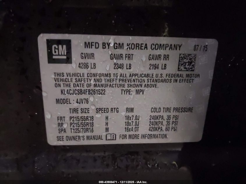 2015 BUICK ENCORE - KL4CJCSB4FB261522, цвет - Коричневий, 1.4, Бензин, Передний привод из США
