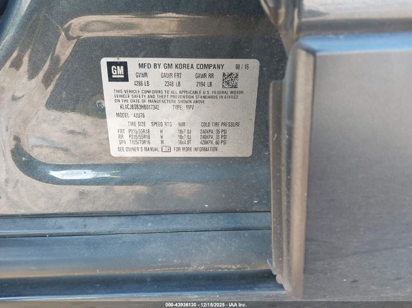 2017 BUICK ENCORE - KL4CJBSB3HB017342, цвет - Серый, 1.4, Бензин, Передний привод из США
