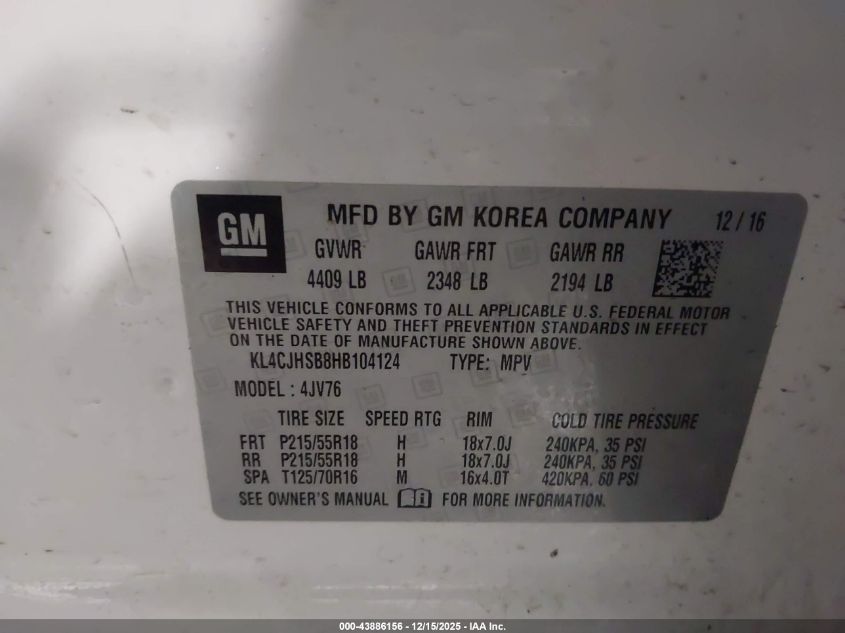 2017 BUICK ENCORE - KL4CJHSB8HB104124, цвет - Белый, 1.4, Бензин, Полный привод из США