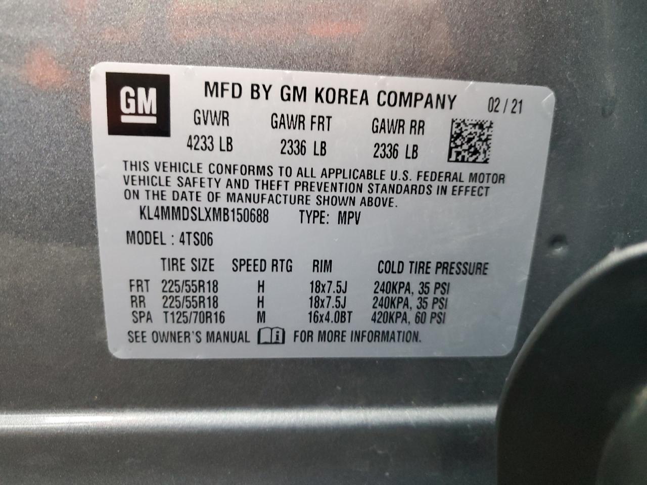 2021 BUICK ENCORE - KL4MMDSLXMB150688, цвет - Серебряный, 1.3, Бензин, из США