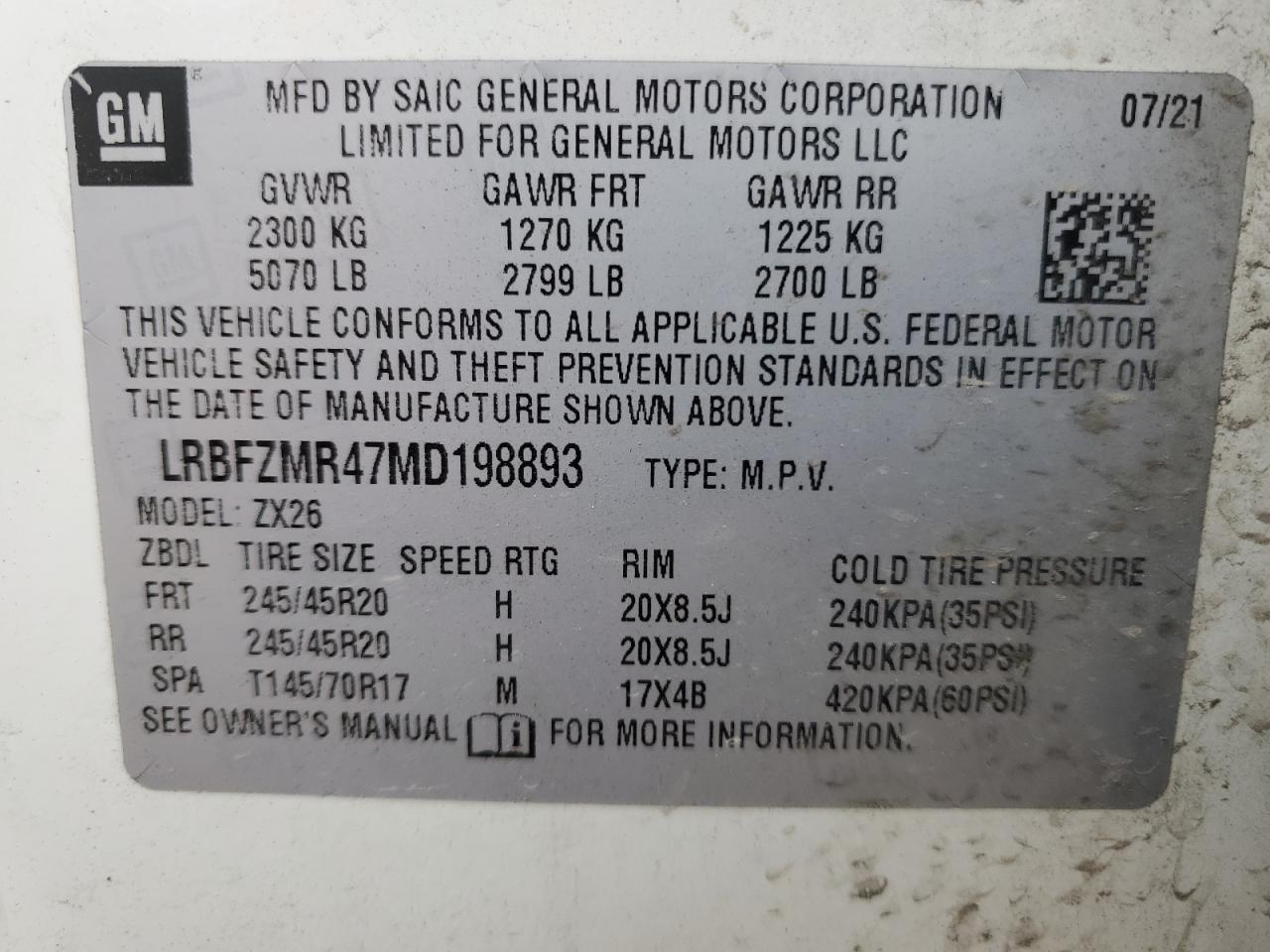 Цвет БелыйЦилиндры 4Привод Полный приводVIN LRBFZMR47MD198893Состояние Заводится и едет (проверено)Повреждения Передняя или задняяДата аукциона 2025-10-08