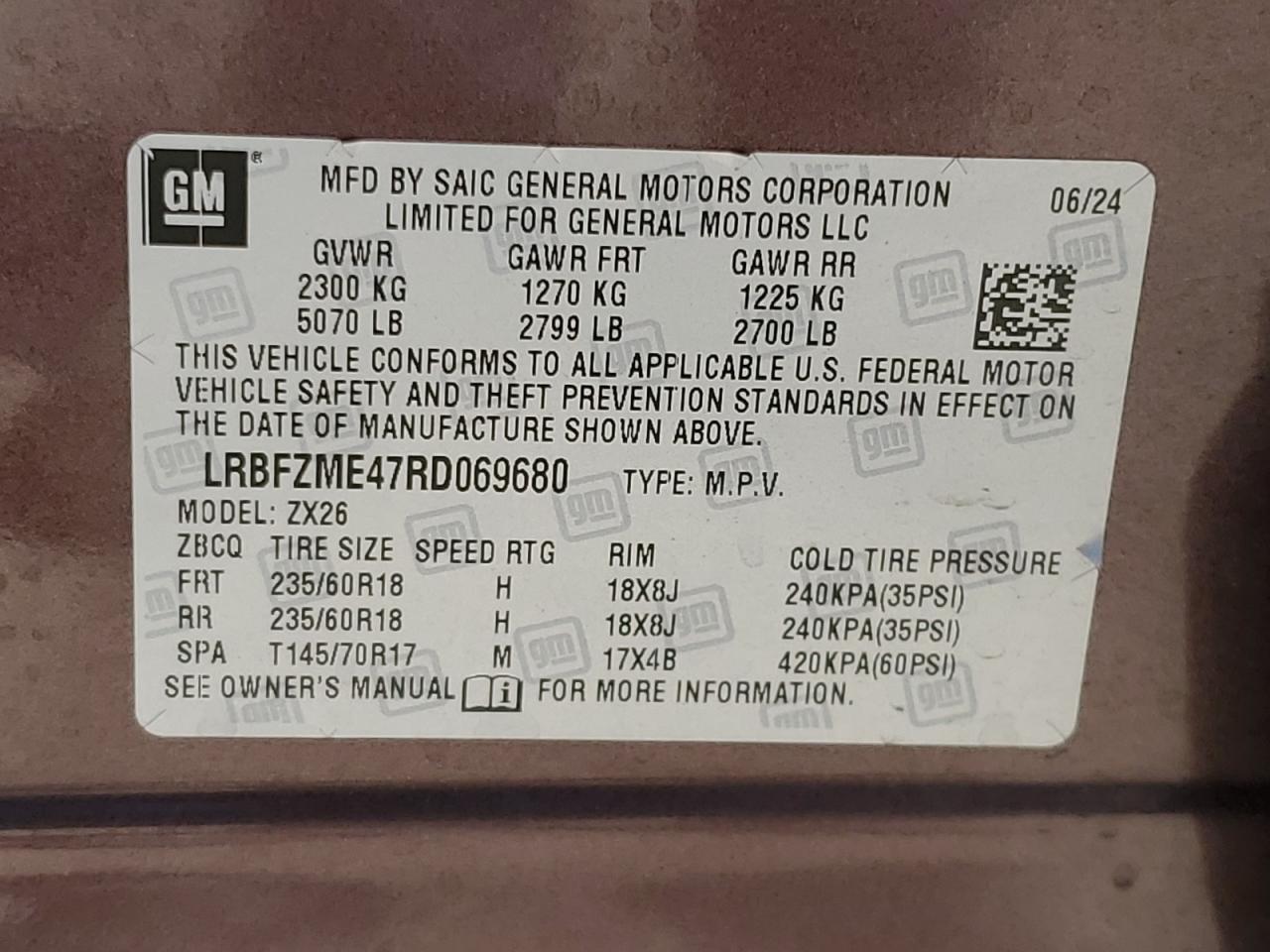 2024 BUICK ENVISION - LRBFZME47RD069680, цвет - Фиолетовый, 2.0, Бензин, Полный привод из США