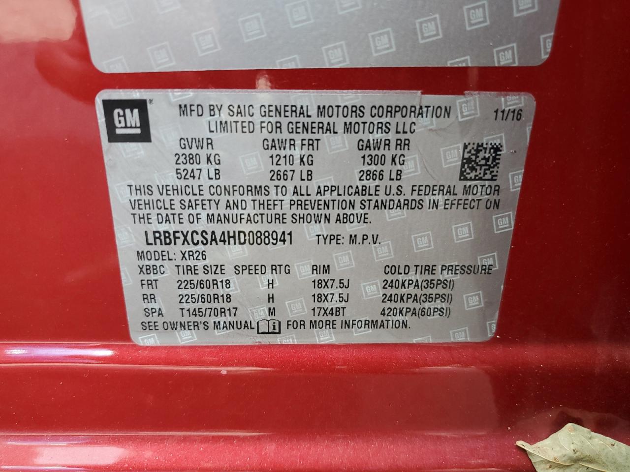 2017 BUICK ENVISION - LRBFXCSA4HD088941, цвет - Красный, 2.5, Бензин, Полный привод из США