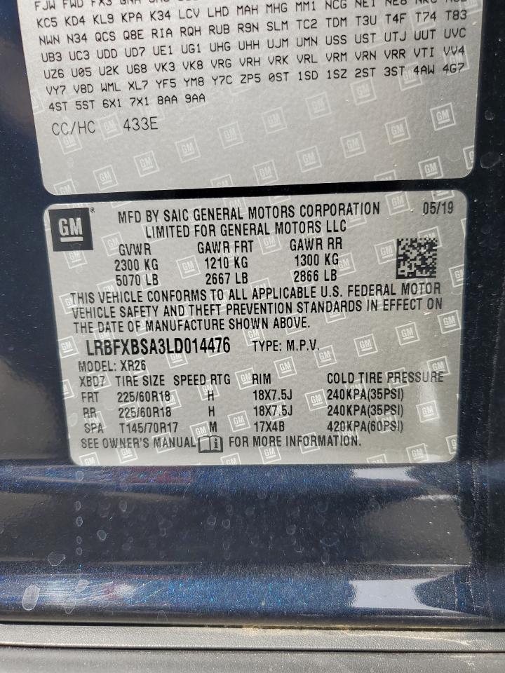 2020 BUICK ENVISION - LRBFXBSA3LD014476, цвет - Синий, 2.5, Бензин, из США