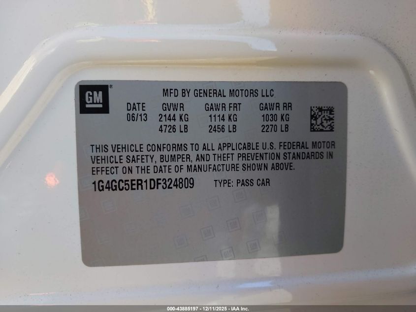 2013 BUICK LACROSSE - 1G4GC5ER1DF324809, цвет - Белый, 2.4, Бензин, Передний привод из США