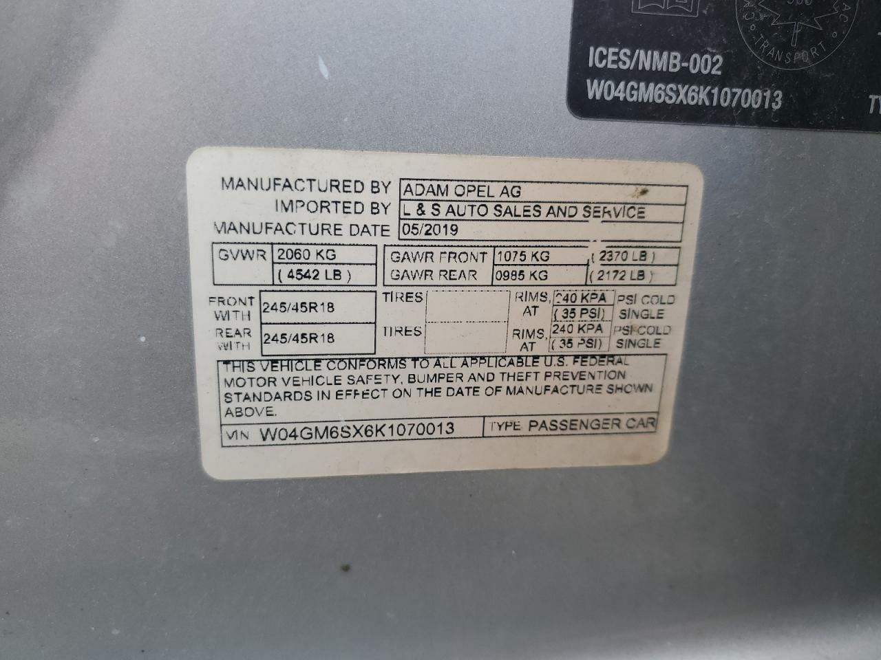 2019 BUICK REGAL - W04GM6SX6K1070013, цвет - Серебряный, 2.0, Бензин, из США