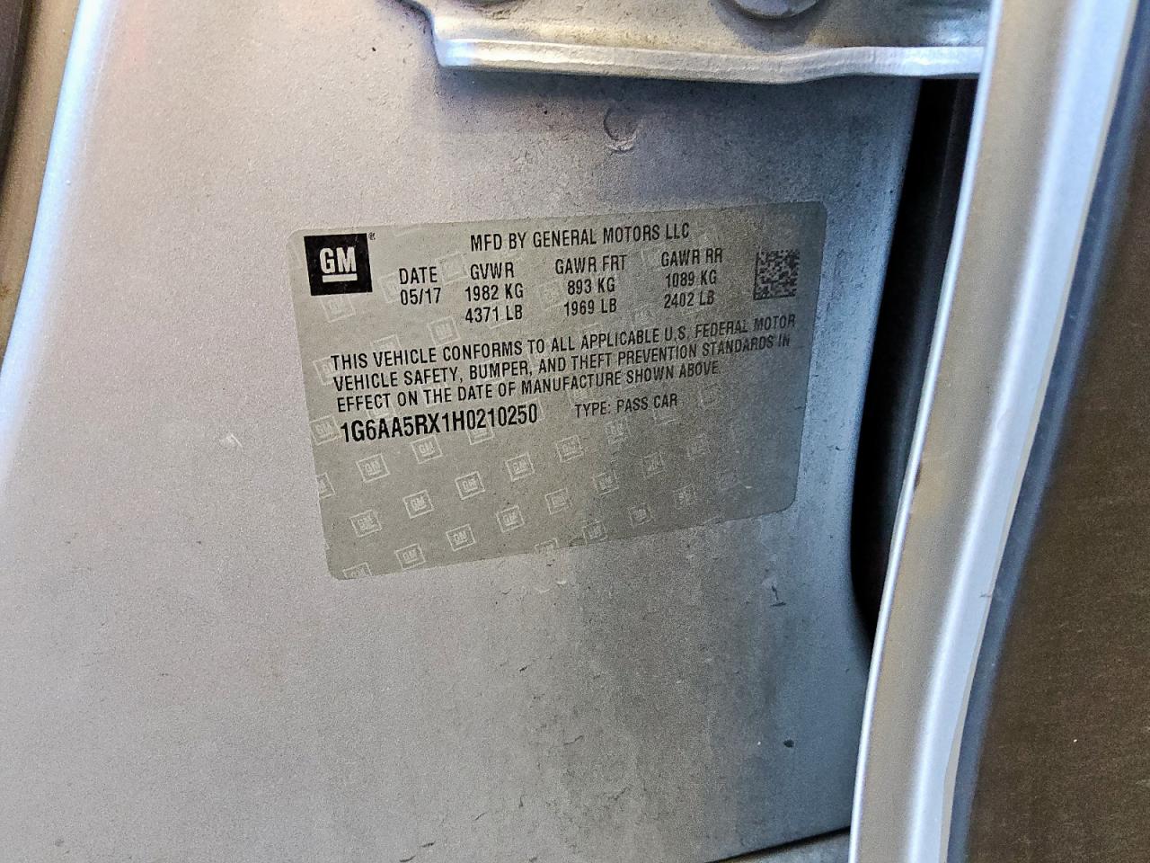 Цвет ЧерныйЦилиндры 4Привод Задний приводVIN 1G6AA5RX1H0210250Состояние Заводится и едет (проверено)Повреждения НезначительныеДата аукциона 2025-10-09