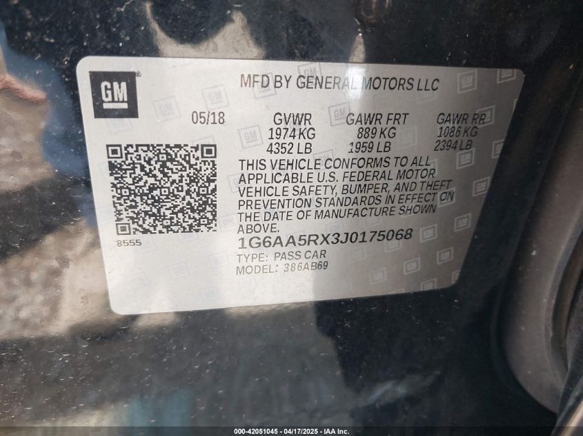 2018 CADILLAC ATS - 1G6AA5RX3J0175068, цвет - Черный, 2.0, Бензин, Задний привод из США