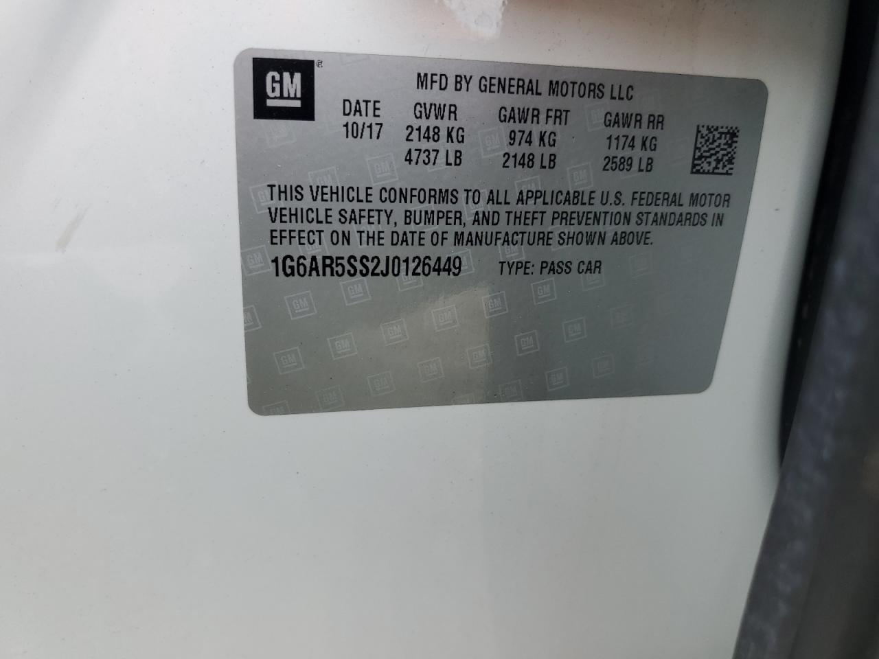 Цвет БелыйЦилиндры 6Привод Задний приводVIN 1G6AR5SS2J0126449Состояние Заводится и едет (проверено)Повреждения Передняя или задняя