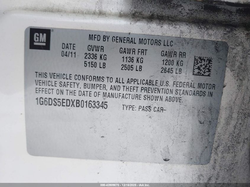 Цвет КремовыйЦилиндры 6Привод Полный приводVIN 1G6DS5EDXB0163345Состояние Заводится и едет (проверено)Повреждения Обычный износДата аукциона 2025-12-17