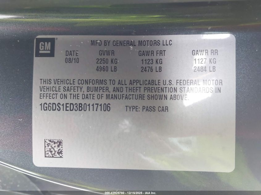 Цвет ЗеленыйЦилиндры 6Привод Полный приводVIN 1G6DS1ED3B0117106Состояние СтационарноПовреждения Передняя или задняя