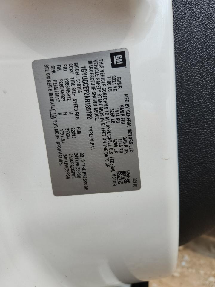 2010 CADILLAC ESCALADE - 1GYUCCEF2AR189782, цвет - Белый, 6.2, Бензин, Задний привод из США