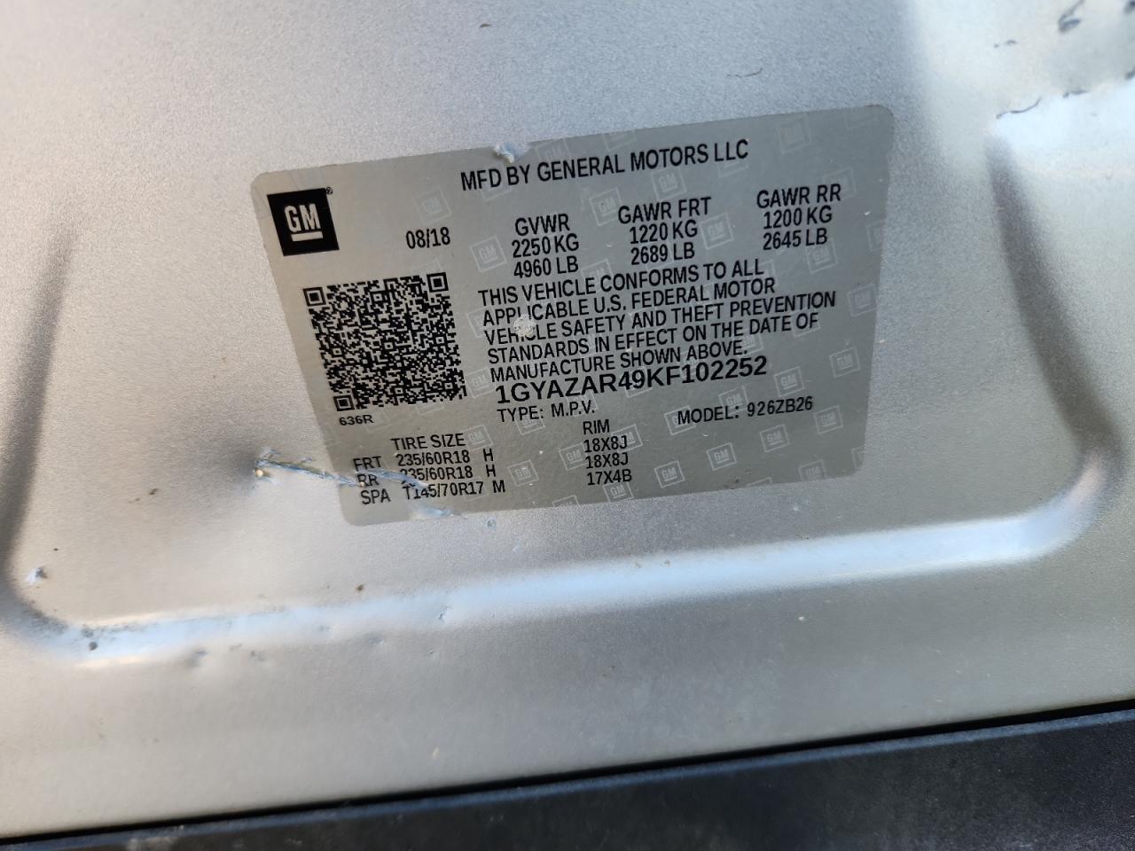 Цвет СеребряныйЦилиндры 4VIN 1GYAZAR49KF102252Состояние НеизвестноПовреждения По бокам