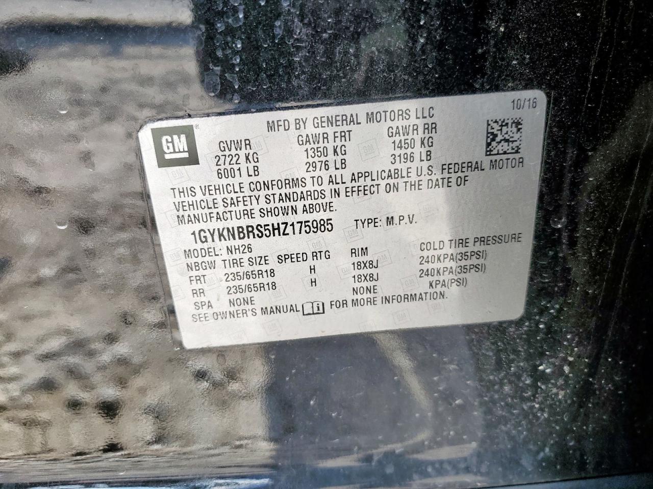 Цвет ЧерныйЦилиндры 6VIN 1GYKNBRS5HZ175985Состояние Заводится и едет (проверено)Повреждения Передняя или задняя