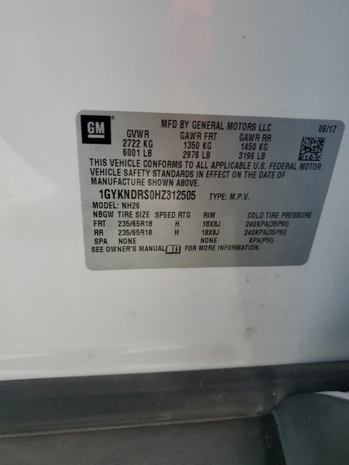 2017 CADILLAC XT5 - 1GYKNDRS0HZ312505, цвет - Белый, 3.6, Бензин, Полный привод из США