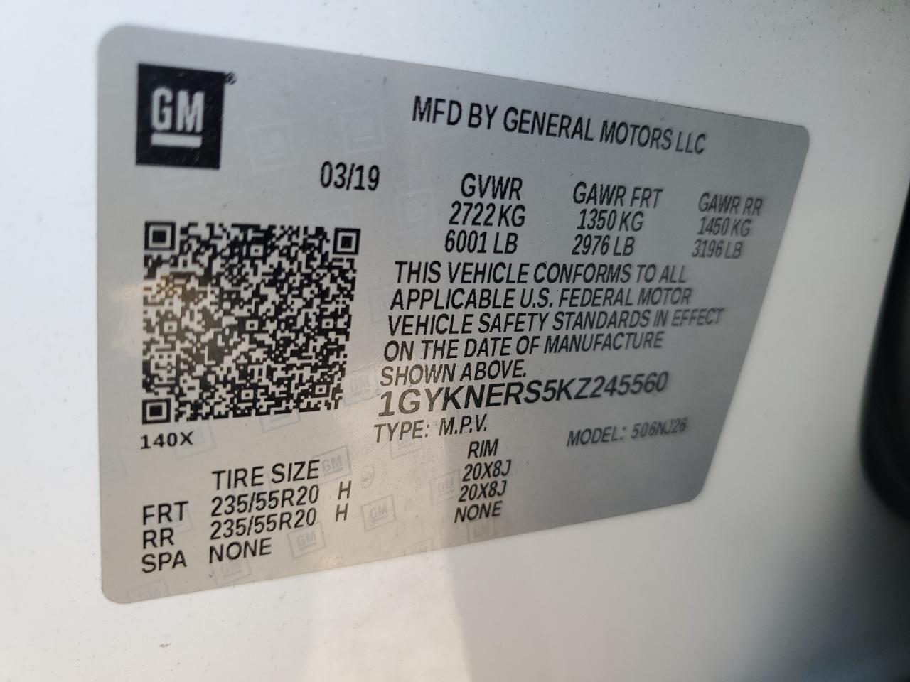 Цвет БелыйЦилиндры 6VIN 1GYKNERS5KZ245560Состояние НеизвестноПовреждения Передняя или задняяДата аукциона 2025-10-07