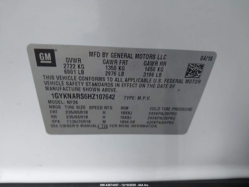 Цвет БелыйЦилиндры 6Привод Передний приводVIN 1GYKNARS6HZ107642Состояние Заводится и едет (проверено)Повреждения Передняя или задняя