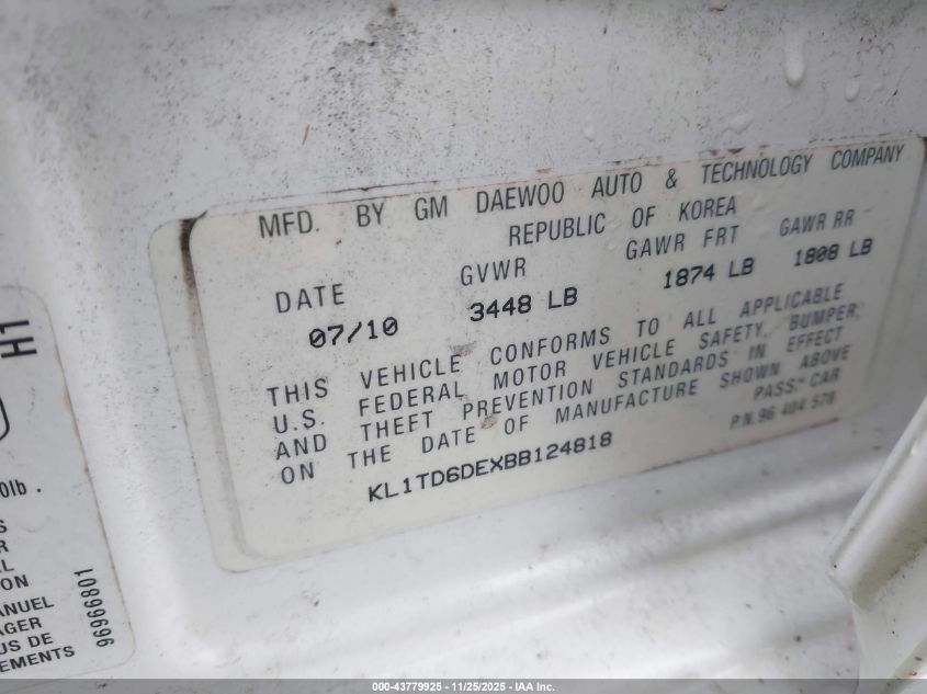 2011 CHEVROLET AVEO - KL1TD6DEXBB124818, цвет - Белый, 1.6, Бензин, Передний привод из США