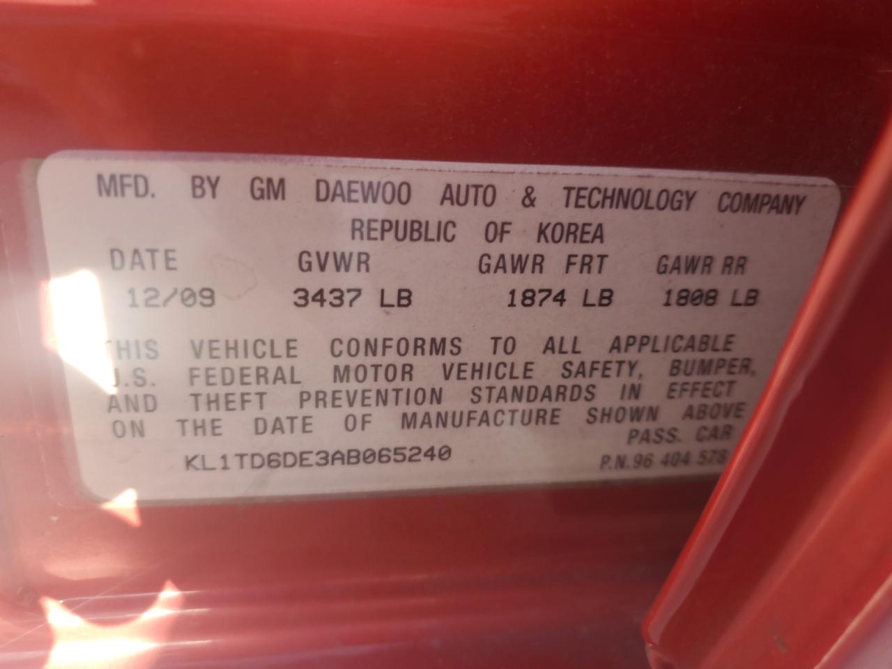 2010 CHEVROLET AVEO - KL1TD6DE3AB065240, цвет - Бургундия, 1.6, Бензин, из США