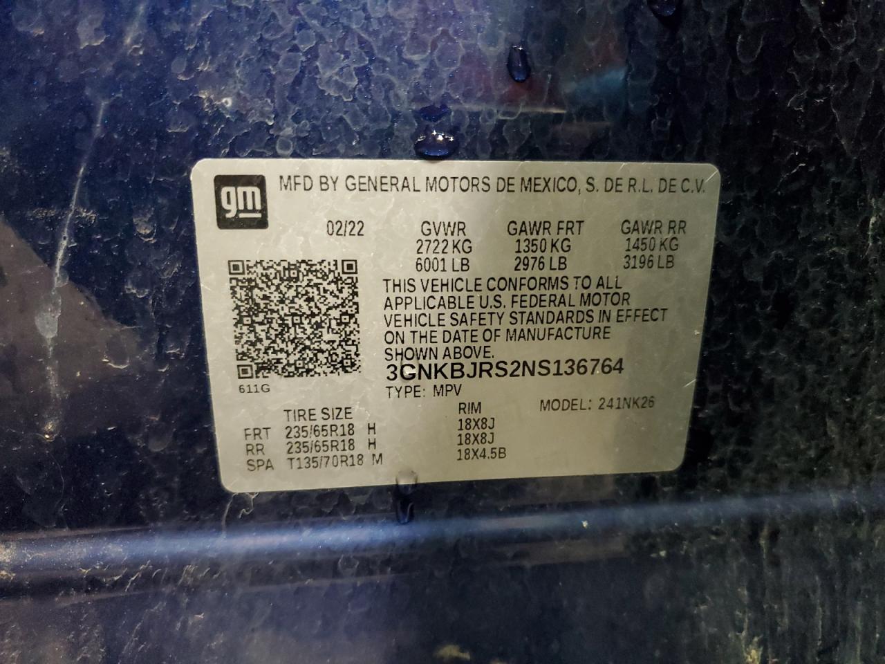 2022 CHEVROLET BLAZER - 3GNKBJRS2NS136764, цвет - Синий, 3.6, Бензин, Полный привод из США