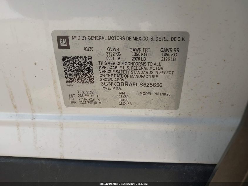 2020 CHEVROLET BLAZER - 3GNKBBRA9LS625656, цвет - Белый, 2.5, Бензин, Передний привод из США