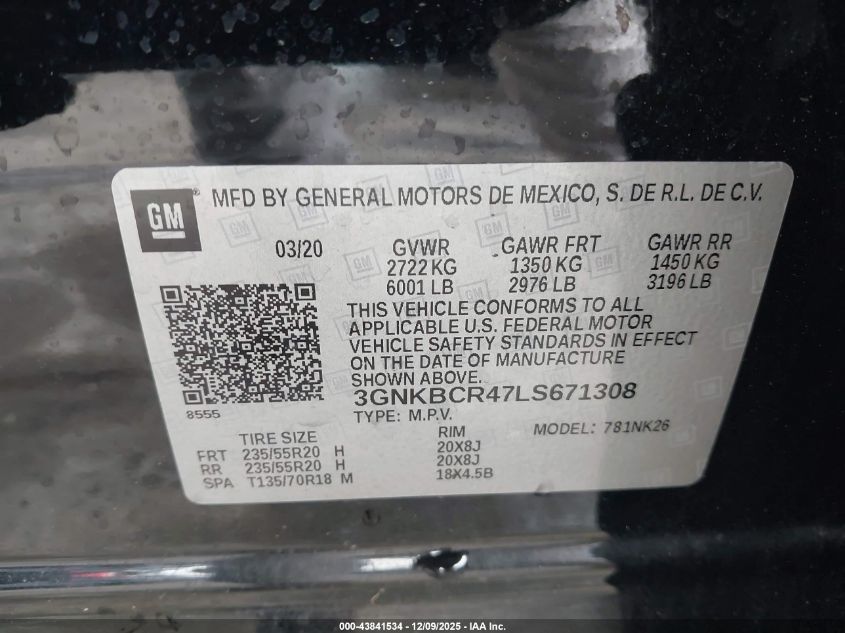 2020 CHEVROLET BLAZER - 3GNKBCR47LS671308, цвет - Черный, 2.0, Бензин, Передний привод из США