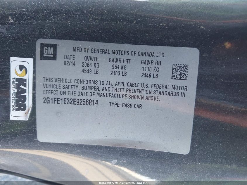 Цвет СерыйЦилиндры 6Привод Задний приводVIN 2G1FE1E32E9256814Состояние СтационарноПовреждения Передняя или задняя