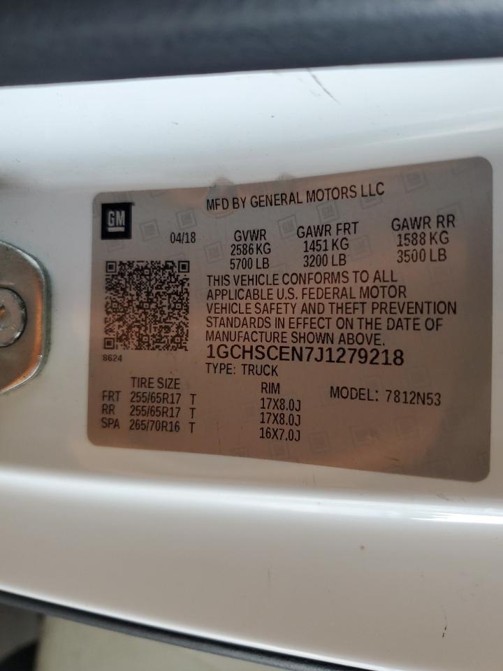 2018 CHEVROLET COLORADO - 1GCHSCEN7J1279218, цвет - Белый, 3.6, Бензин, Задний привод из США