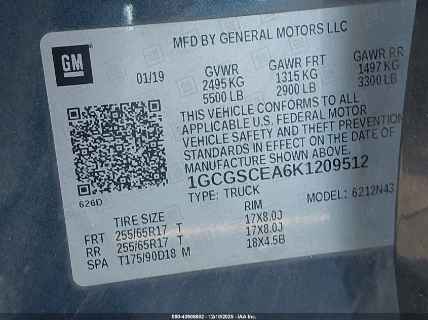 2019 CHEVROLET COLORADO - 1GCGSCEA6K1209512, цвет - Синий, 2.5, Бензин, из США
