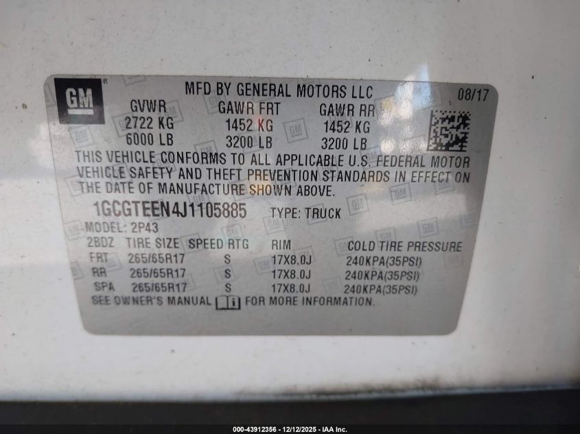 2018 CHEVROLET COLORADO - 1GCGTEEN4J1105885, цвет - Белый, 3.6, Бензин, Полный привод из США