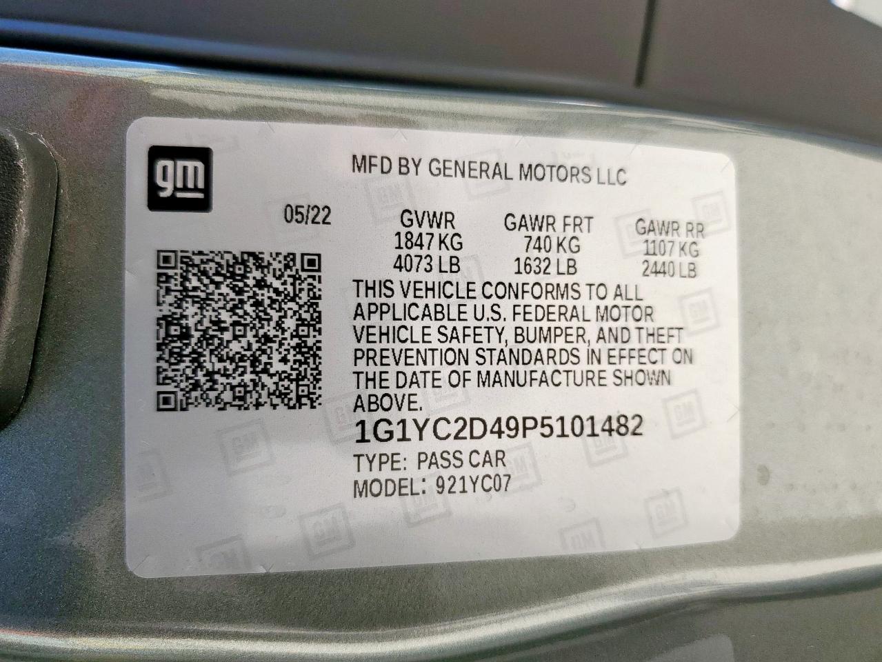 2023 CHEVROLET CORVETTE - 1G1YC2D49P5101482, цвет - Серый, 6.2, Бензин, Задний привод из США