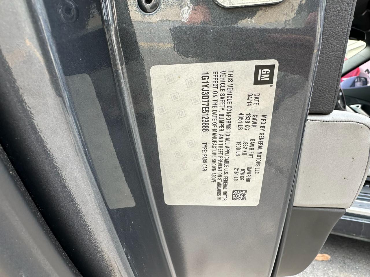 2014 CHEVROLET CORVETTE - 1G1YJ3D77E5123886, цвет - Черный, 6.2, Бензин, Задний привод из США