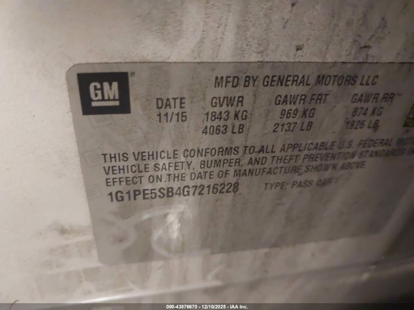 2016 CHEVROLET CRUZE - 1G1PE5SB4G7216228, цвет - Серебряный, 1.4, Бензин, Передний привод из США