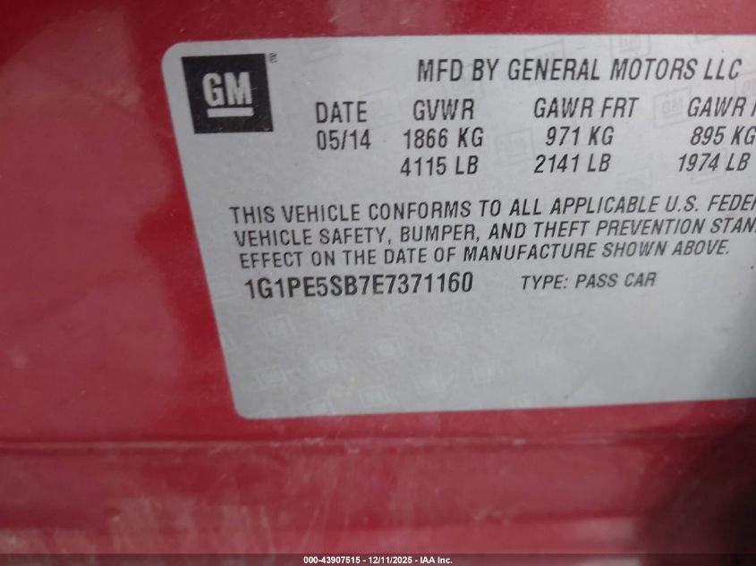 Цвет КрасныйЦилиндры 4Привод Передний приводVIN 1G1PE5SB7E7371160Состояние Заводится и едет (проверено)Повреждения Левая сторона