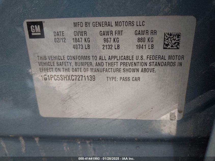 Цвет СерыйЦилиндры 4Привод Передний приводVIN 1G1PC5SHXC7271139Состояние Заводится и едет (проверено)Повреждения Задняя леваяДата аукциона 2025-11-11