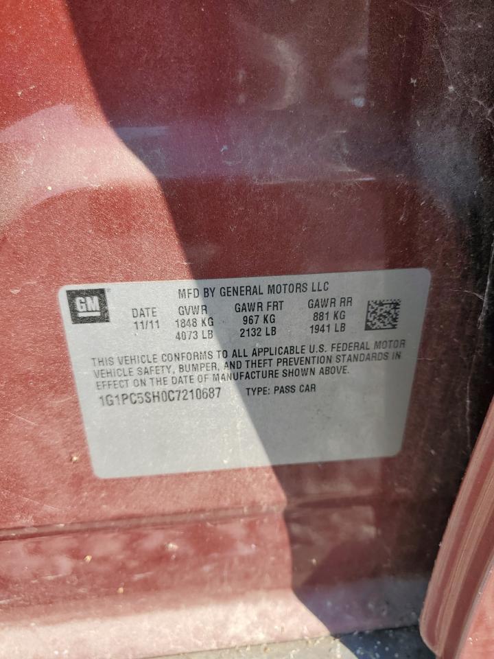 2012 CHEVROLET CRUZE - 1G1PC5SH0C7210687, цвет - Бургундия, 1.8, Бензин, из США