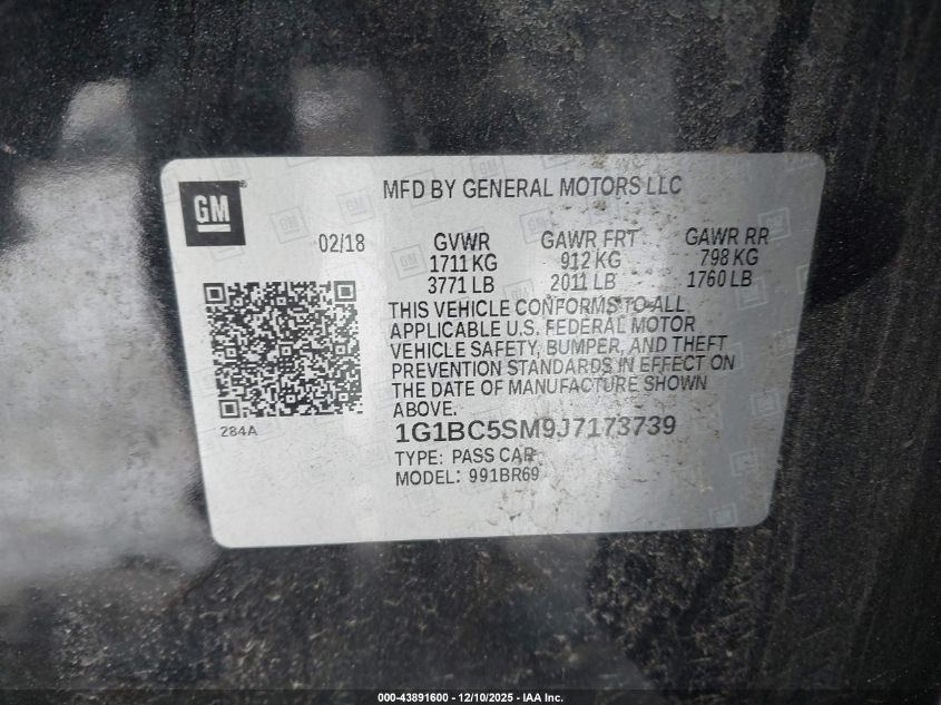 2018 CHEVROLET CRUZE - 1G1BC5SM9J7173739, цвет - Черный, 1.4, Бензин, Передний привод из США