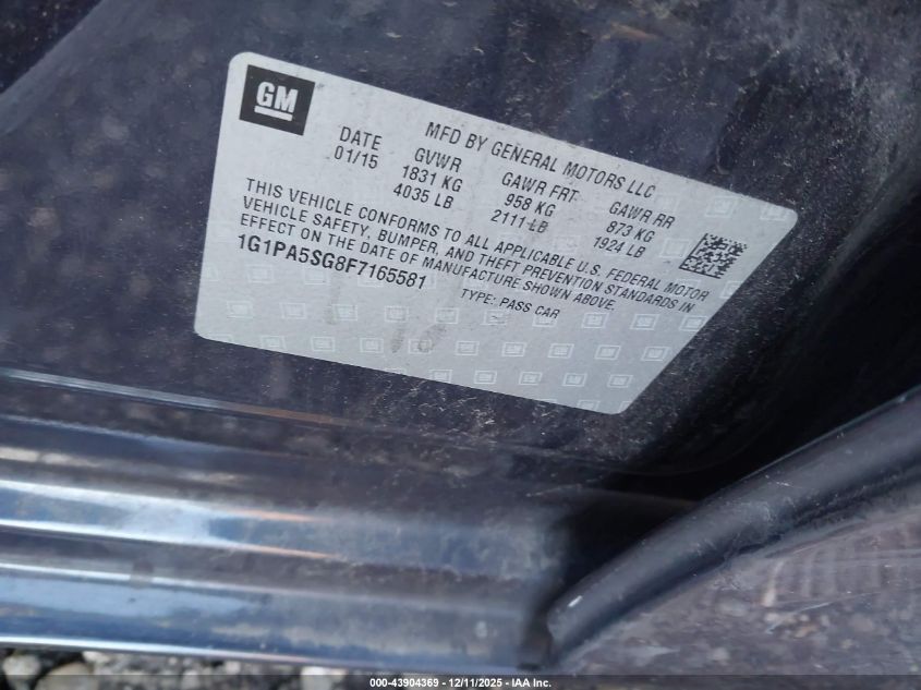 2015 CHEVROLET CRUZE - 1G1PA5SG8F7165581, цвет - Серый, 1.8, Бензин, Передний привод из США