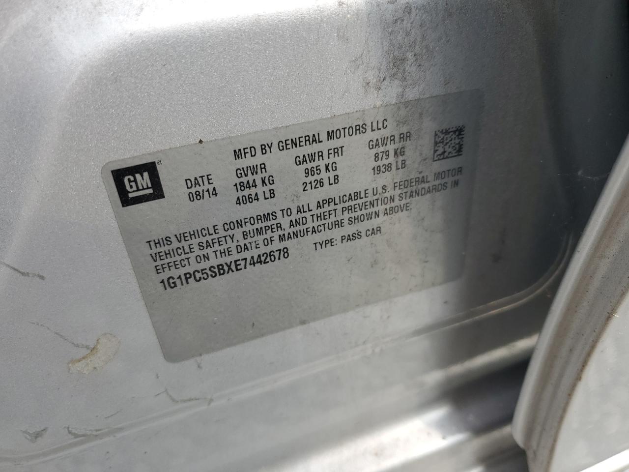 2014 CHEVROLET CRUZE - 1G1PC5SBXE7442678, цвет - Серый, 1.4, Бензин, из США