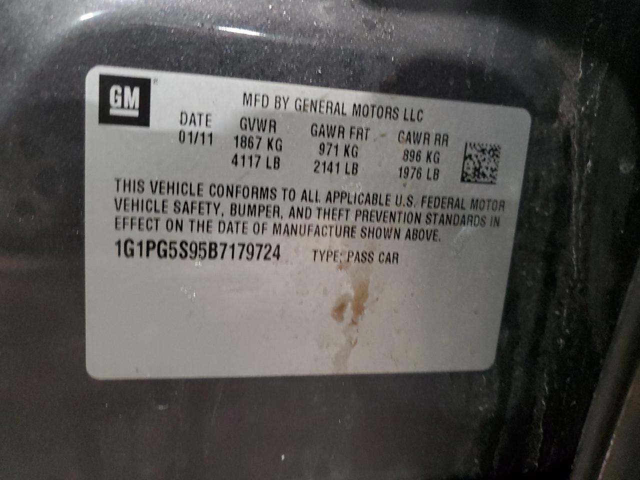 2011 CHEVROLET CRUZE - 1G1PG5S95B7179724, цвет - Серый, 1.4, Бензин, из США