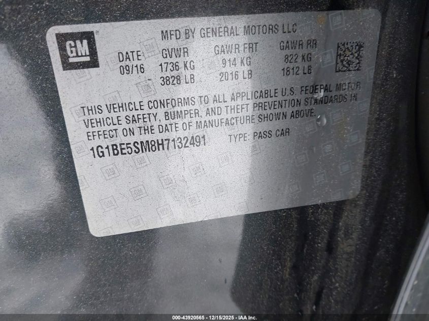 2017 CHEVROLET CRUZE - 1G1BE5SM8H7132491, цвет - , 1.4, Бензин, Передний привод из США