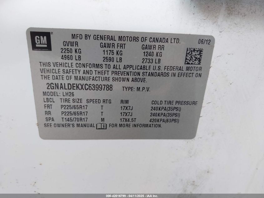 2012 CHEVROLET EQUINOX - 2GNALDEKXC6399788, цвет - Белый, 2.4, Бензин, Передний привод из США