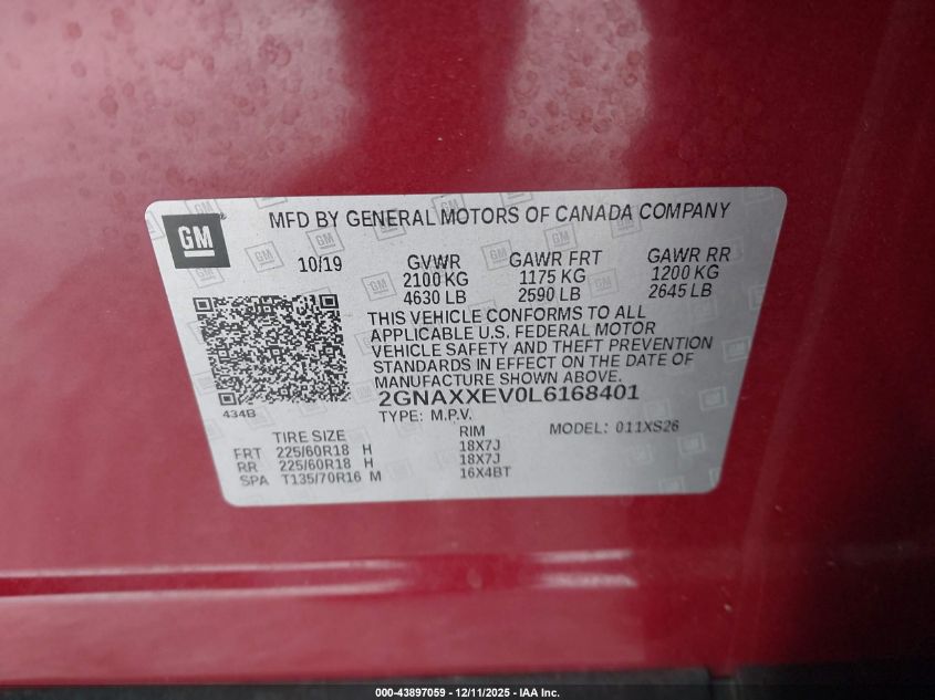 Цвет КрасныйЦилиндры 4Привод Полный приводVIN 2GNAXXEV0L6168401Состояние Заводится и едет (проверено)Повреждения Опрокидывание