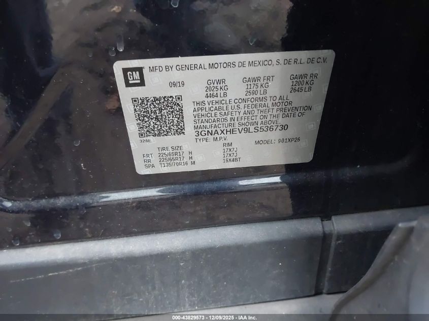 2020 CHEVROLET EQUINOX - 3GNAXHEV9LS536730, цвет - Черный, 1.5, Бензин, Передний привод из США
