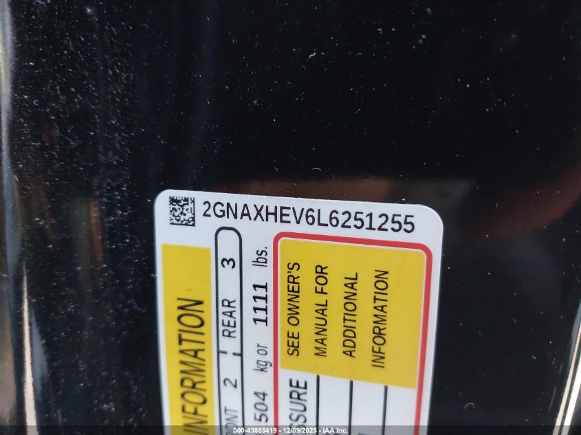 2020 CHEVROLET EQUINOX - 2GNAXHEV6L6251255, цвет - Черный, 1.5, Бензин, Передний привод из США