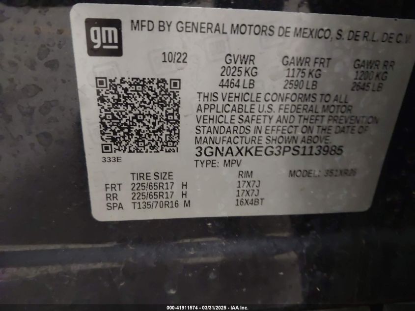 2023 CHEVROLET EQUINOX - 3GNAXKEG3PS113985, цвет - Серый, 1.5, Бензин, Передний привод из США