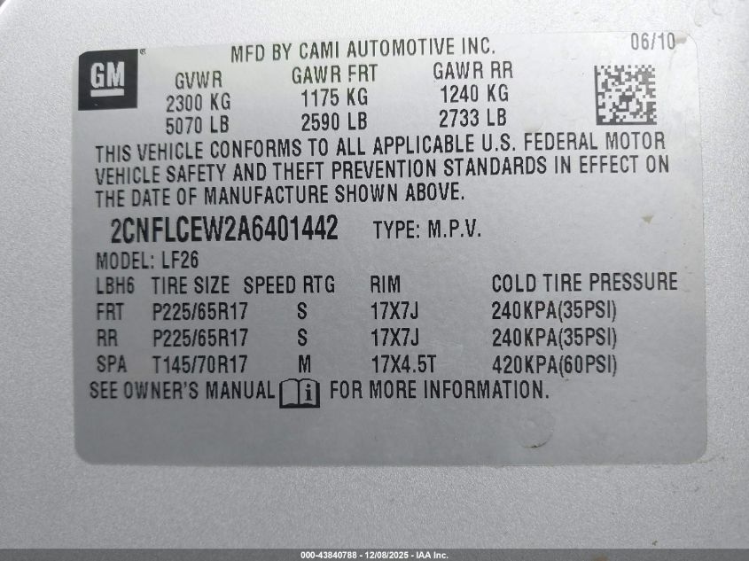 Цвет СеребряныйЦилиндры 4Привод Полный приводVIN 2CNFLCEW2A6401442Состояние Заводится и едет (проверено)Повреждения Передняя или задняя