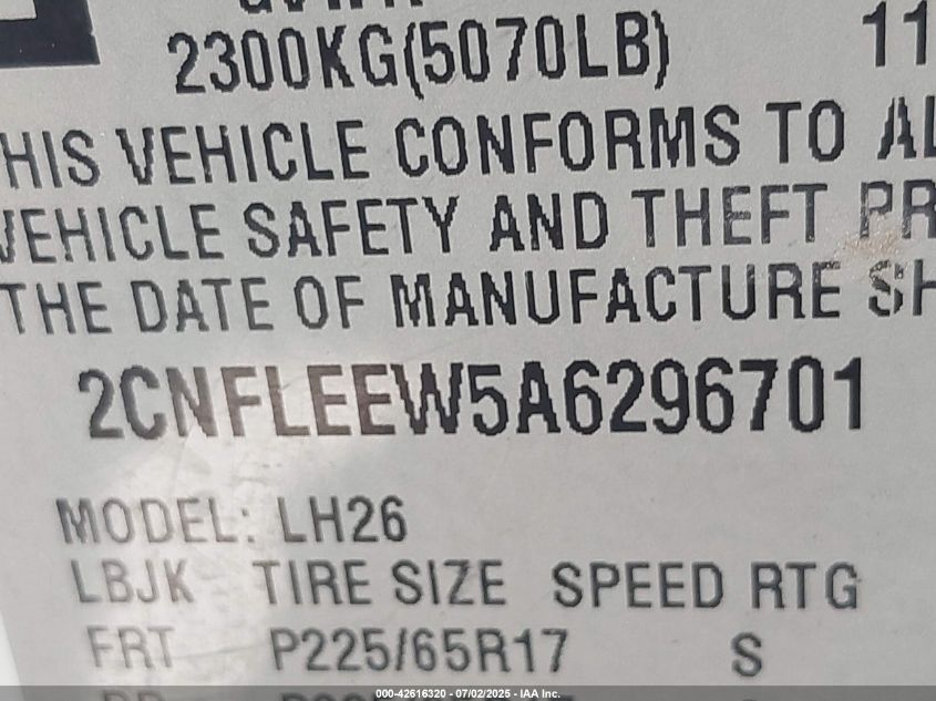Цвет БелыйЦилиндры 4Привод Полный приводVIN 2CNFLEEW5A6296701Состояние Заводится и едет (проверено)Повреждения Передняя правая