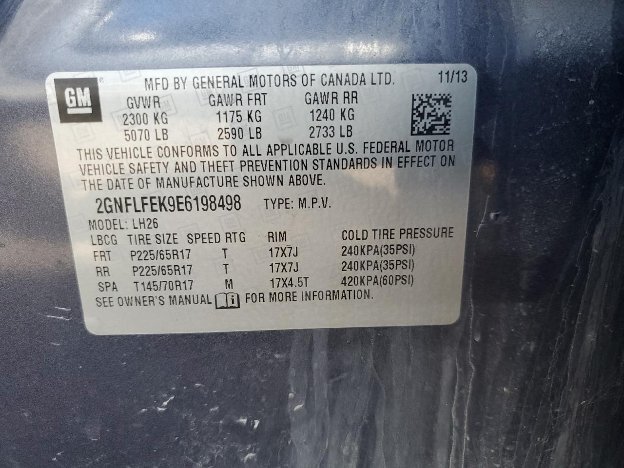 Цвет СинийЦилиндры 4Привод Полный приводVIN 2GNFLFEK9E6198498Состояние НеизвестноПовреждения НезначительныеДата аукциона 2025-10-07
